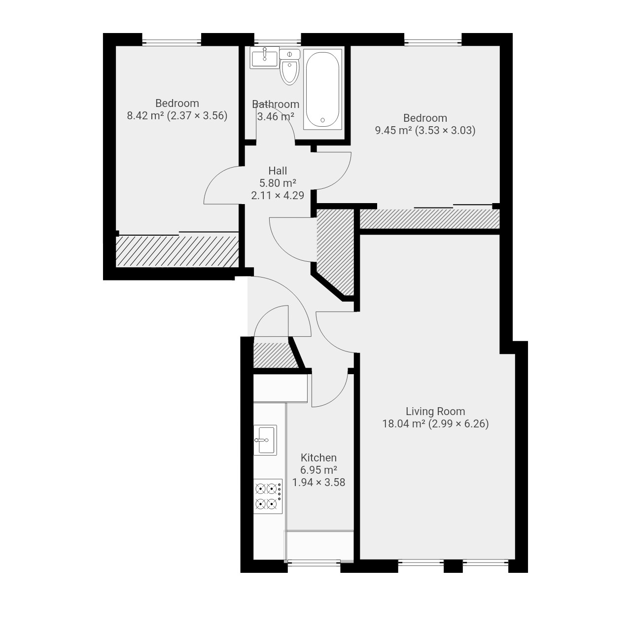 There are two generously sized double bedrooms, both with mirrored fitted wardrobes, and a contemporary bathroom complete with a shower over the bath.